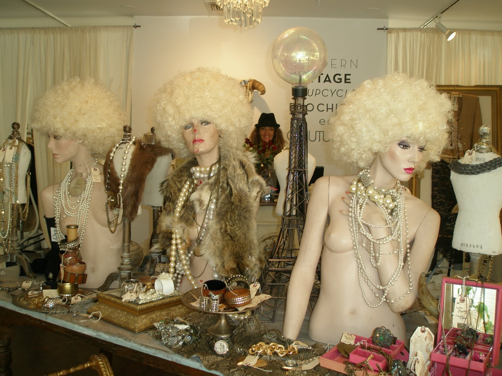Kelly and I had a ball today visiting the Grand Re-Opening of Paris Montana today. This is such a wonderful shop full of beautiful things. You can see Heidi between the middle jewelry model and the Eiffel Tower.